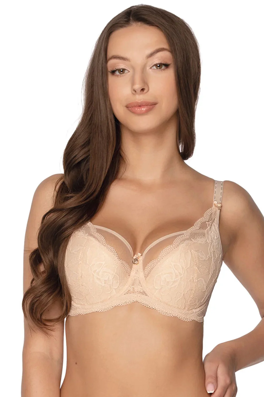 Podprsenka Gaia. Model 931 Veronika. Má dráty, které prsa vhodně tvarují. Svislé velrybí kosti zasazené po stranách. Výrobek má nastavitelné popruhy bez možnosti odepnutí. Podprsenka se zapínáním na háčky a oči. Výrobek je vyroben ze 49 % z polyamidu, 28 % z polyesteru, 14 % z bavlny a 9 % z elastanu. Výrobek pro ženy.