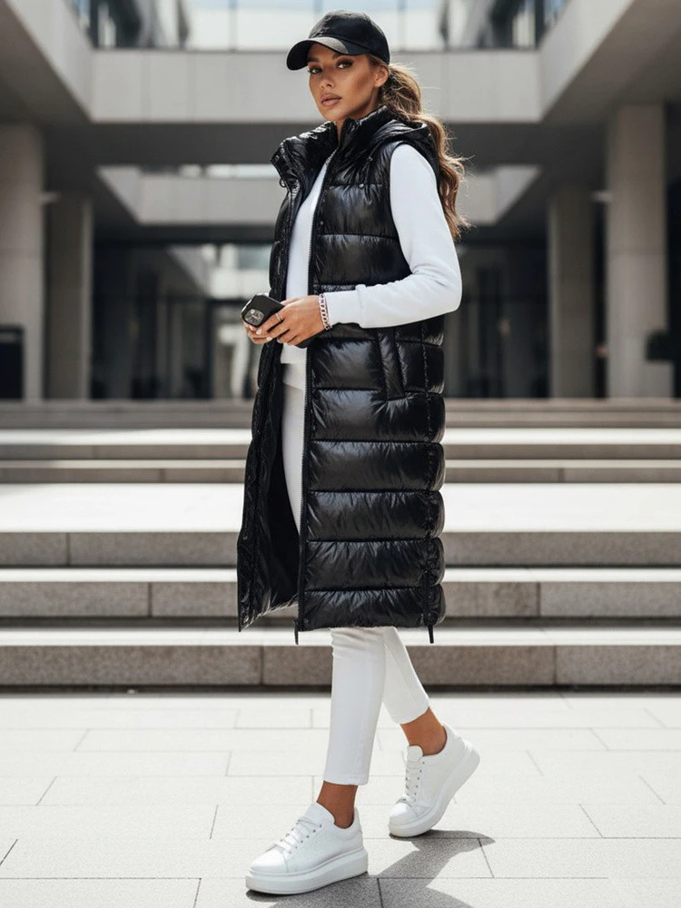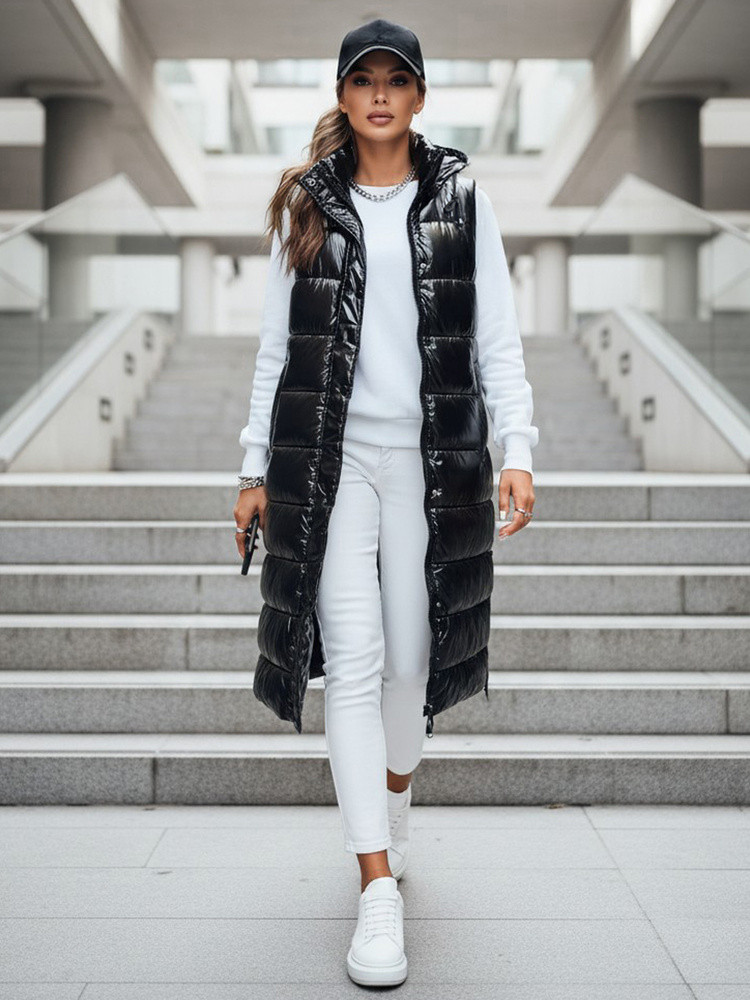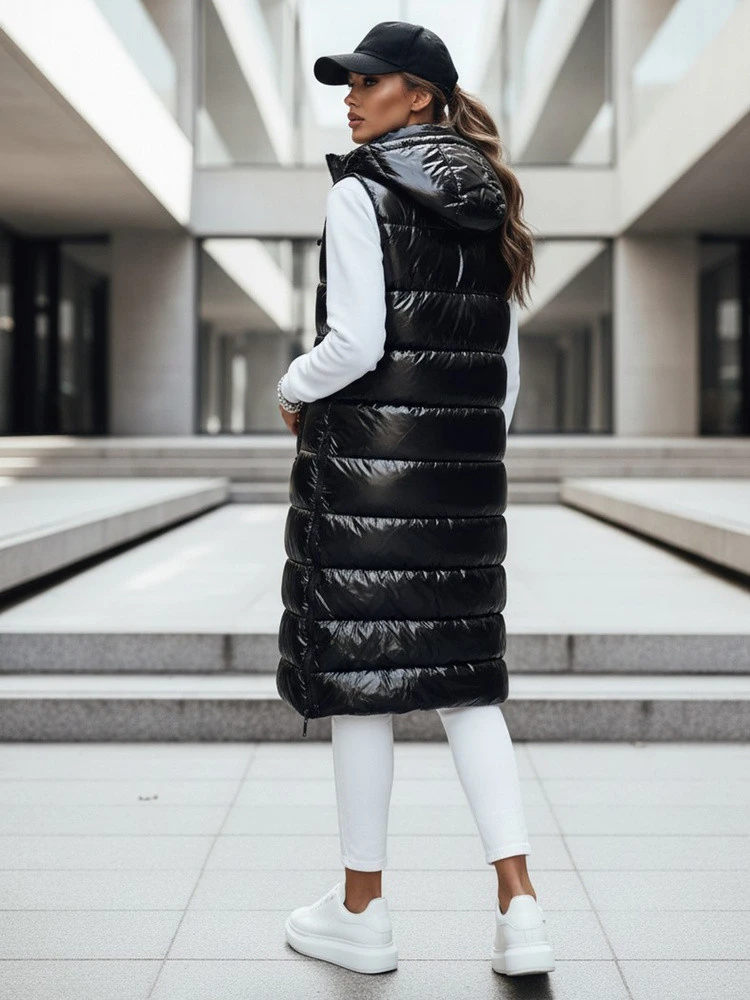 Tato prošívaná vesta s prodlouženým střihem doplňuje stylizaci do chladného počasí a poskytuje další vrstvu pohodlí, aniž by omezovala volnost pohybu. Lesklá tkanina dodává moderní nádech, zatímco svislé prošívání upravuje siluetu. Kapuce zvyšuje funkčnost v proměnlivém počasí. Model se hodí pro sportovní i ležérní stylizaci.