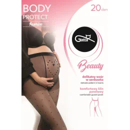 Wyrób pończoszniczy marki Gatta. Model Body Protect 02 20 DEN. Produkt został wykonany z 89% poliamid, 11% elastan. Zaznaczona część majteczkowa. Grubość: 20 DEN. Produkt damski. Bez zaznaczonych palców.