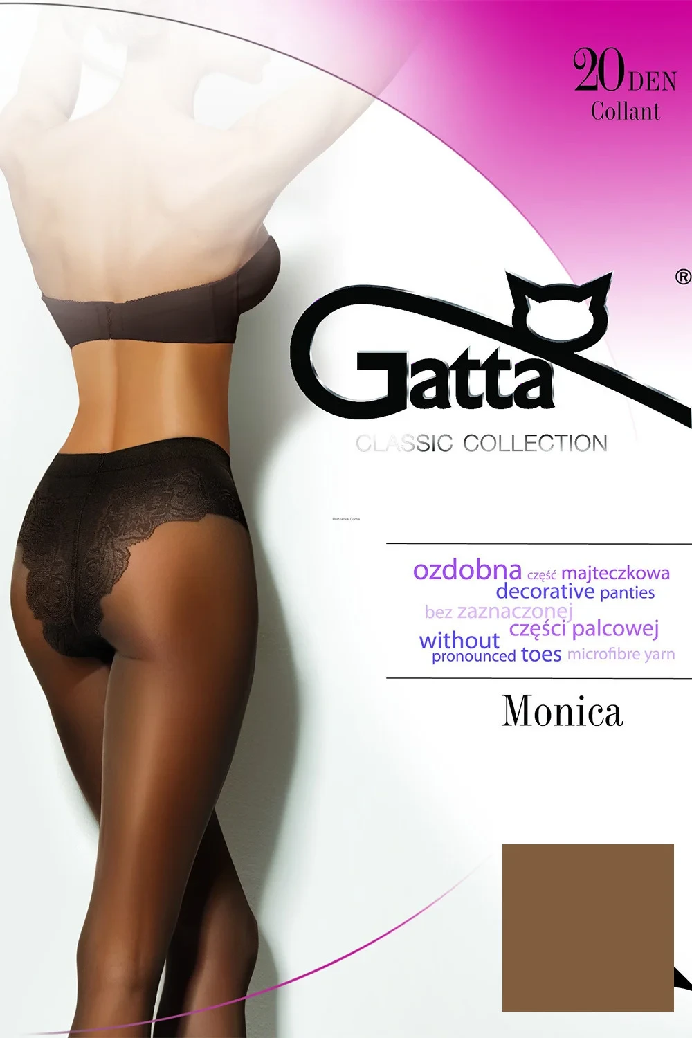 Punčochové kalhoty Gatta, model Monica, z 92 % polyamidu, 8 % lycry, bez vyznačených špiček, tloušťka 20 DEN, pro ženy.Parametry