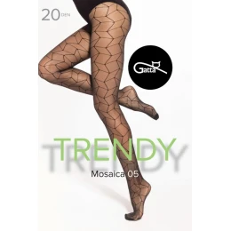 Punčochové kalhoty značky Gatta, model Mosaica 05 20 DEN, vyrobené z 86 % polyamidu a 14 % elastanu, s vyznačenými špičkami, tloušťka 20 DEN, bez vyznačených nohaviček.