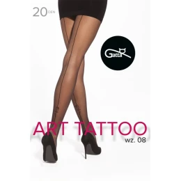 Punčochové kalhoty značky Gatta, model Tattoo 08 20 DEN, vyrobené z 86% polyamidu, 14% elastanu, s vyznačenými špičkami, tloušťka 20 DEN, bez vyznačených nohaviček.