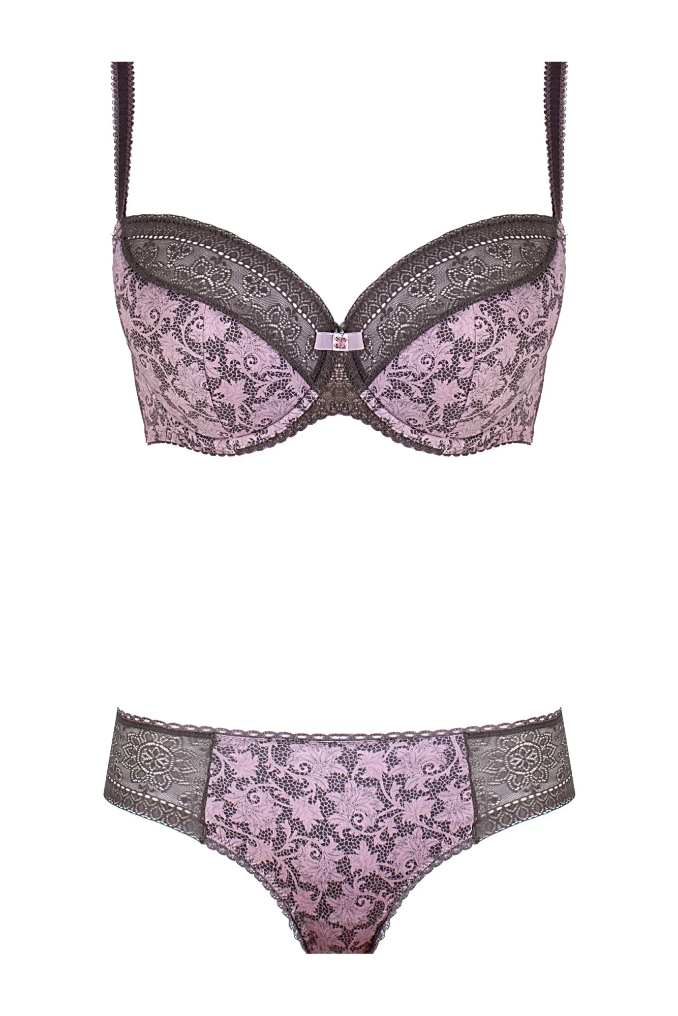 Jemné barvy a výrazné květinové motivy. Gaudi II je podprsenka založená na jemných kontrastech, s polovyztuženým střihem, který je ideální pro trochu větší prsa. Tmavší vzor ve výstřihu zakončený malou mašličkou. Jeden z nejlepších polských výrobců spodního prádla.