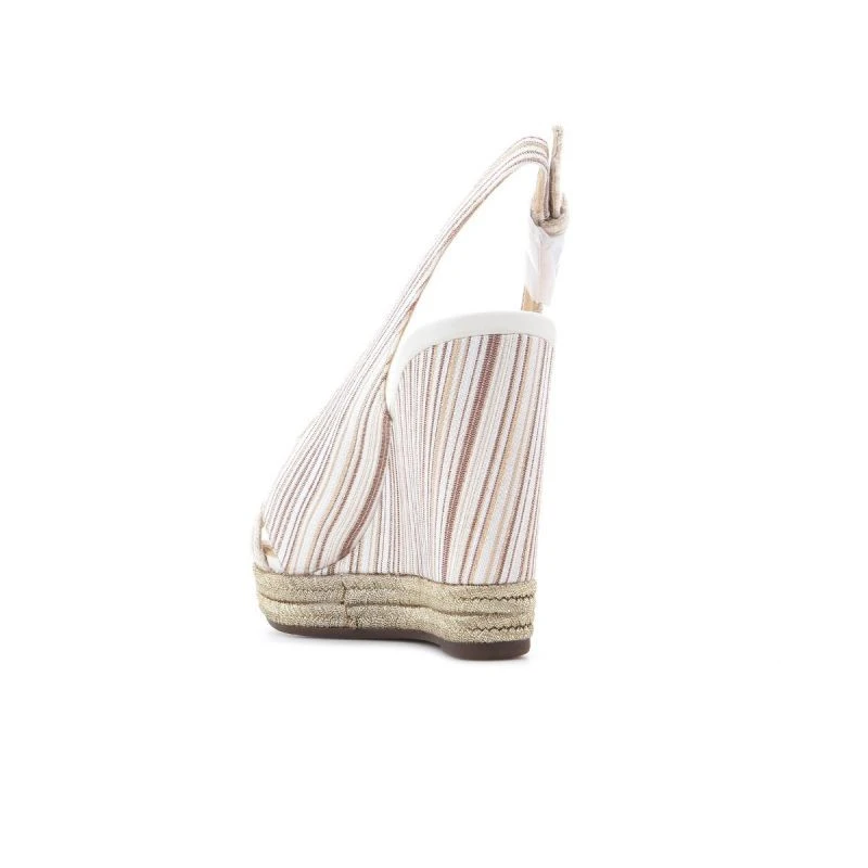 - Dodatečné zdobení zajišťuje zlatá přezka, která zároveň poskytuje možnost nastavení pásku na patě, a úprava kolem podrážky ve vzoru dvojitého zlatého opletu.