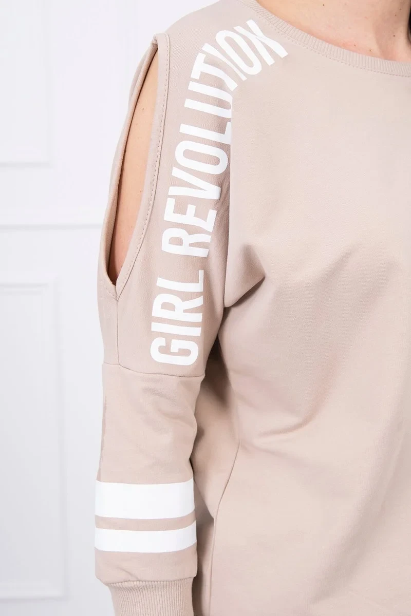 Představujeme vám sadu mikiny a kalhot s nápisem Girl Revolution. Sada je vyrobena z vysoce kvalitního materiálu. Velikost je univerzální a vyhovuje dámám velikosti S, M nebo L.