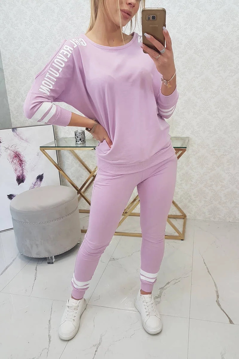 Představujeme vám sadu mikiny a kalhot s nápisem Girl Revolution. Sada je vyrobena z vysoce kvalitního materiálu. Velikost je univerzální a vyhovuje dámám velikosti S, M nebo L.