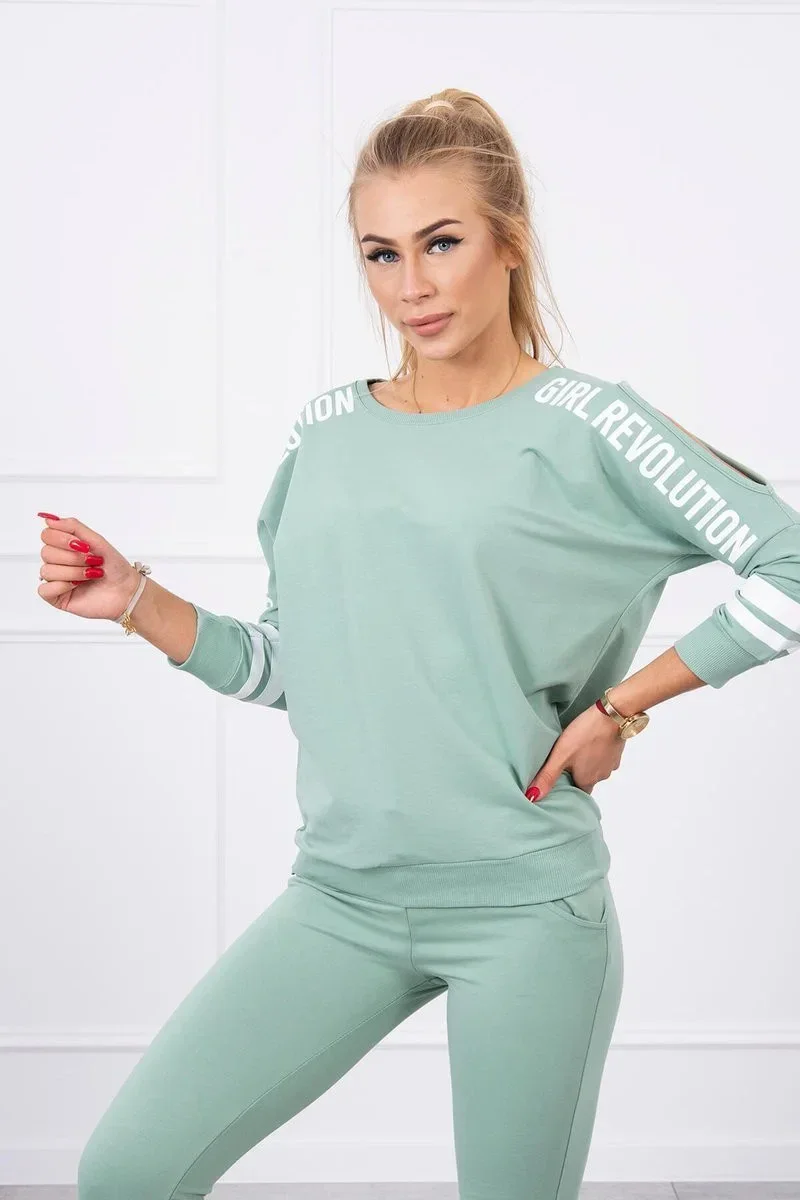 Představujeme vám sadu mikiny a kalhot s nápisem Girl Revolution. Sada je vyrobena z vysoce kvalitního materiálu. Velikost je univerzální a vyhovuje dámám velikosti S, M nebo L.