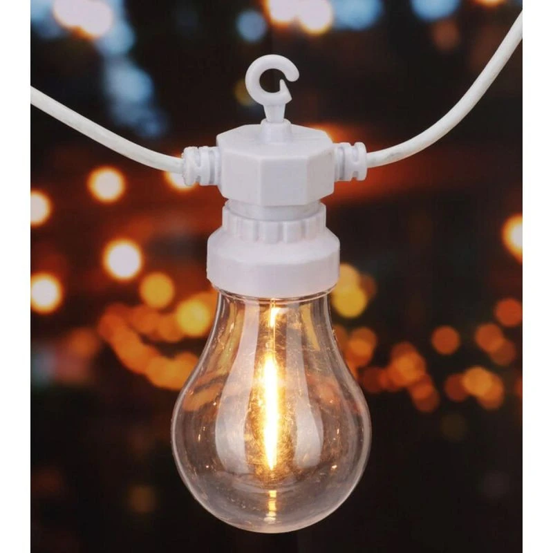GIRLANDA OGRODOWA PARTY LIGHT 20LED A60 BIAŁY KABEL 9,5 M to doskonałe rozwiązanie, które połączy funkcję praktycznego oświetlenia z efektowną dekoracją. Nadaje się idealnie na wieczorne spotkania przy grillu, garden party, czy jako codzienna ozdoba przestrzeni zewnętrznej.