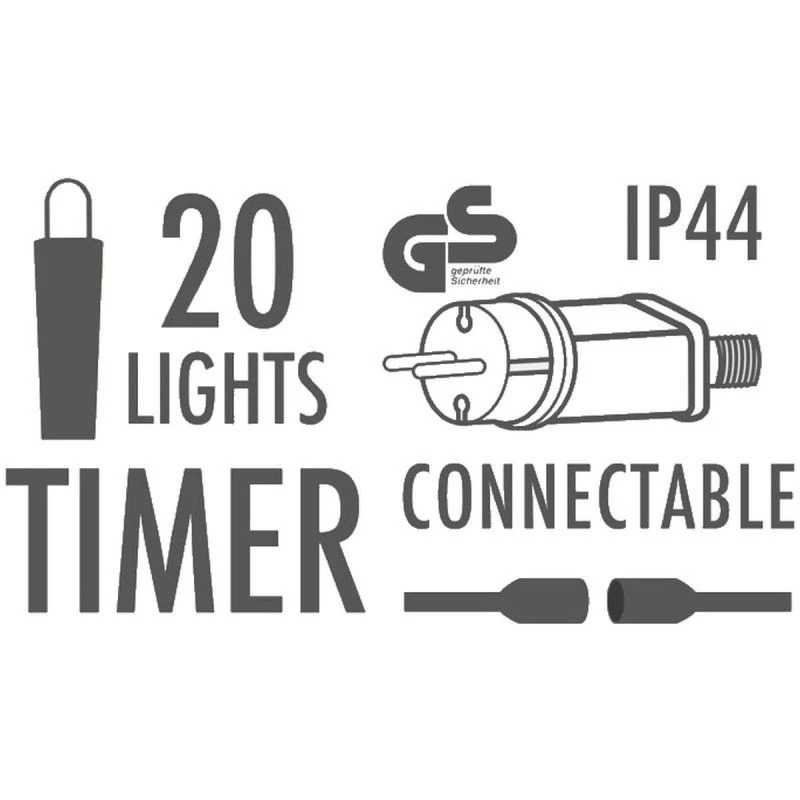 Girlanda została wyposażona w 20 żarówek LED o ciepłej białej barwie, które dodadzą uroku każdemu miejscu, w którym zostaną zawieszone. Ciepła barwa światła sprawia, że przestrzeń staje się bardziej przyjazna i nastrojowa, niezależnie od okazji.