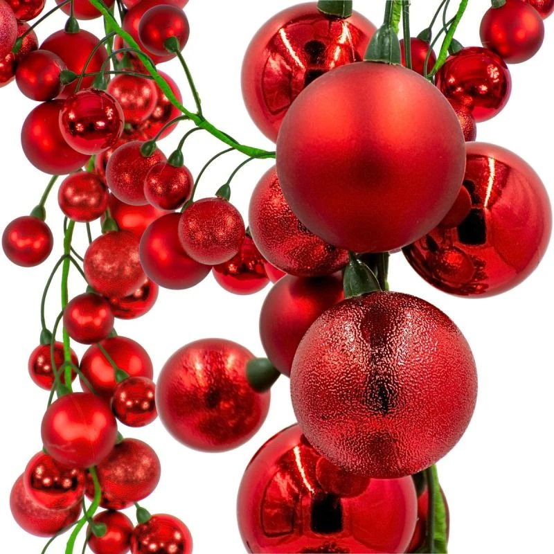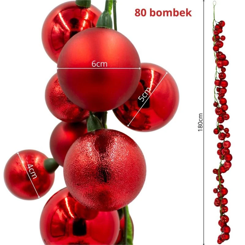 Girlanda świąteczna MICA o długości 180 cm z czerwonymi bombkami to gotowa dekoracja, która w kilka chwil odmieni wnętrze. Dzięki 80 wkomponowanym bombkom całość prezentuje się bogato, elegancko i wyjątkowo świątecznie.