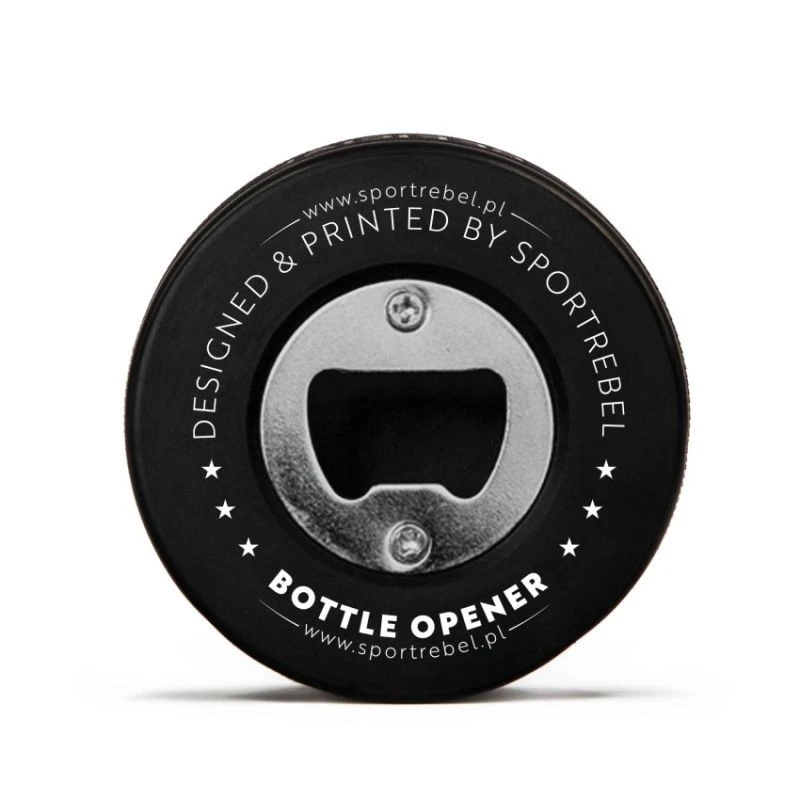 Otvírák byl navržen a vyroben společností Sportrebel a jeho černý design připomíná klasický hokejový puk. Další podrobnosti: Kolem otvíráku je napsáno "Designed & Printed by Sportrebel" a webová adresa "www.sportrebel.pl", což podtrhuje jeho originalitu a pečlivé zpracování. Otvírák se bude skvěle hodit jako praktický doplněk v každodenním životě a zároveň bude skvělým doplňkem, který vám bude připomínat váš oblíbený tým.