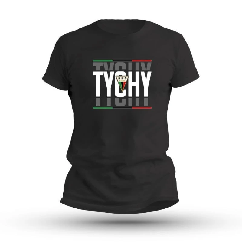Koszulka krótki rękaw GKS Tychy Shadow Man To klasyczny element garderoby każdego fana klubu. Wykonana w eleganckiej czerni, podkreśla przywiązanie do drużyny w stylowy sposób. Głównw cechy: Unikalny design: Na przodzie koszulki widnieje napis "TYCHY" z efektem cieniowania, a centralnym punktem jest herb GKS Tychy. Dodatkowego charakteru dodają subtelne paski w barwach klubowych. Wysoka jakość materiału: Koszulka została wykonana z mieszanki 85% bawełny i 15% wiskozy, co zapewnia trwałość, miękkość i komfort noszenia. Optymalna gramatura: Gramatura 190 g/m² gwarantuje odpowiednią wytrzymałość i wygodę, dzięki czemu koszulka sprawdzi się zarówno na co dzień, jak i podczas kibicowania na meczu. Koszulka GKS Tychy "Shadow" to idealny wybór dla fanów, którzy chcą w stylowy sposób pokazać swoje wsparcie dla klubu.