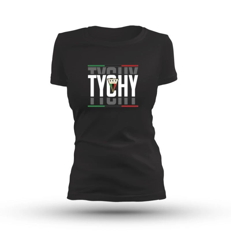Koszulka krótki rękaw GKS Tychy Shadow Woman To klasyczny element garderoby każdej fanki klubu. Wykonana w eleganckiej czerni, podkreśla przywiązanie do drużyny w stylowy sposób. Głównw cechy: Unikalny design: Na przodzie koszulki widnieje napis "TYCHY" z efektem cieniowania, a centralnym punktem jest herb GKS Tychy. Dodatkowego charakteru dodają subtelne paski w barwach klubowych. Wysoka jakość materiału: Koszulka została wykonana z mieszanki 85% bawełny i 15% wiskozy, co zapewnia trwałość, miękkość i komfort noszenia. Optymalna gramatura: Gramatura 190 g/m² gwarantuje odpowiednią wytrzymałość i wygodę, dzięki czemu koszulka sprawdzi się zarówno na co dzień, jak i podczas kibicowania na meczu. Koszulka GKS Tychy "Shadow" to idealny wybór dla fanek, które chcą w stylowy sposób pokazać swoje wsparcie dla klubu.