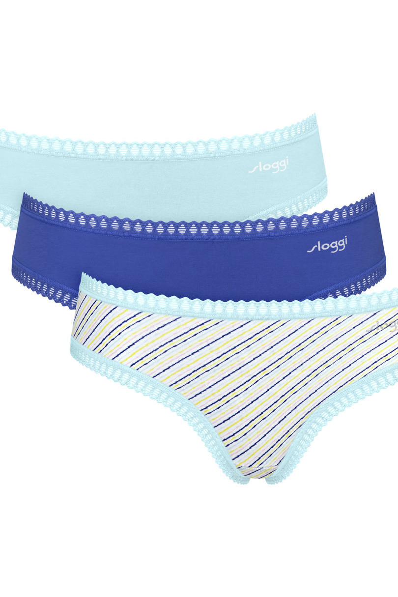 Dámská sada bikinových kalhotek Sloggi je dokonalou kombinací pohodlí, kvality a nadčasového stylu. Sada obsahuje tři páry kalhotek v různých barvách - jednobarevných i vzorovaných, takže je praktická a univerzální.