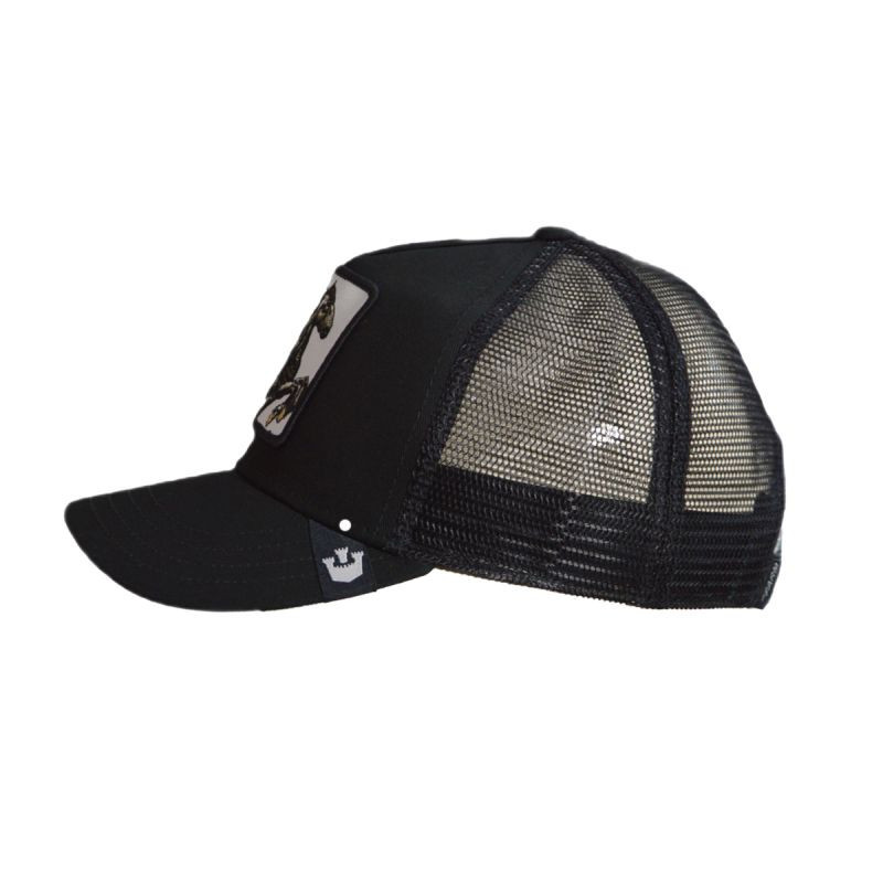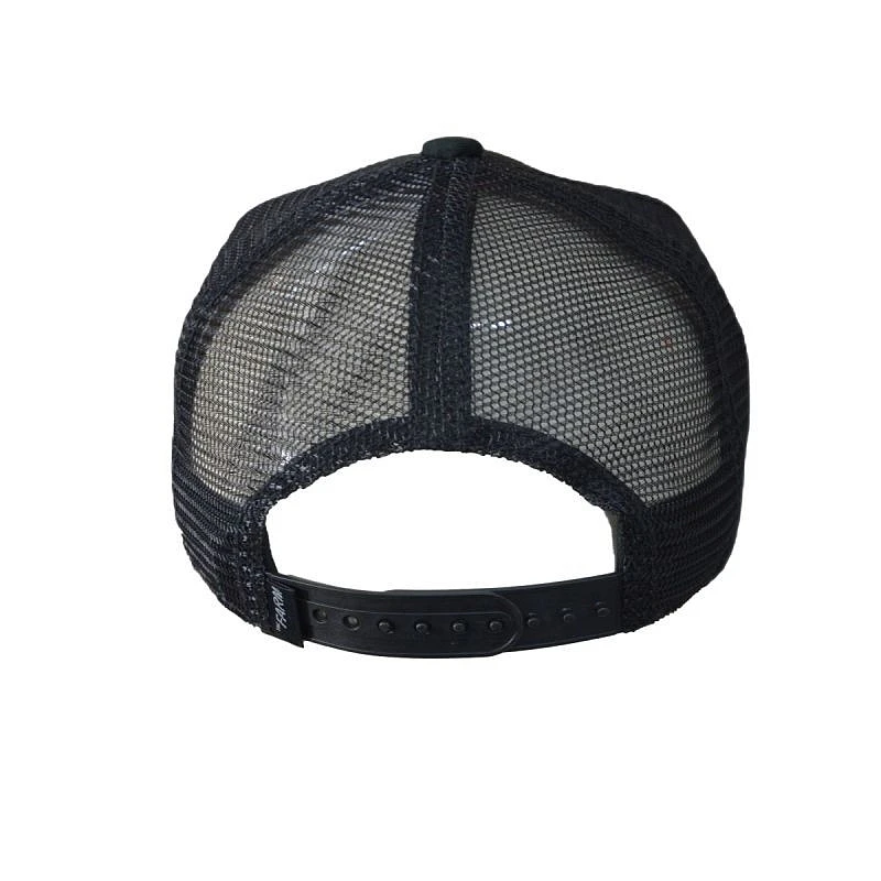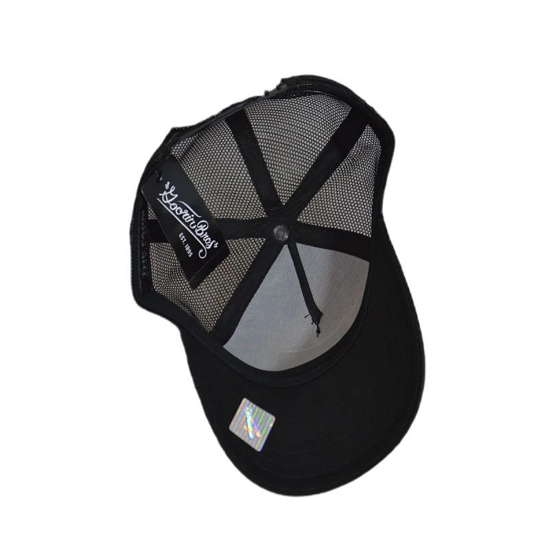 Kšiltovka typu trucker v černé barvě s žakárovým štítkem značky Goorin Bros na kšiltu.