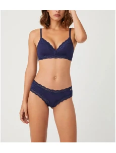 Dámské kahotky z mikrovlákna a květované krajky, se sníženým pasem. Ploché obšití zajišťuje pohodlí a diskrétnost. 83% polyamid, 17% elastan. Velikosti: S, M, L, XL. Barvy: Bílá, černá, tělová.