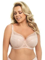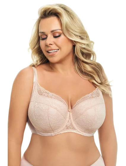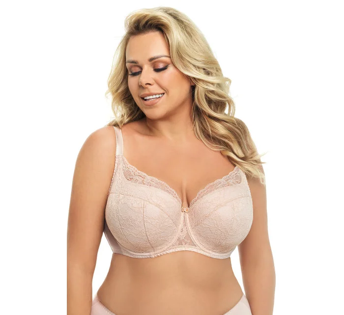 Podprsenka značky Gorsenia, model K483 Peony, má drátky, které podporují a tvarují prsa. Svislé kostice na bocích. Výrobek má nastavitelná ramínka bez možnosti odepnutí. Zapínání na háčky. Místo zapínání: na zádech. 2 řady svislých háčků. 3 stupně vodorovných háčků. Výrobek je vyroben z 90 % z polyamidu, 7 % z elastanu, 3 % z polyesteru. Vlastnosti výrobku: krajkový ženský plný košíček na léto.Parametry