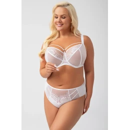 Podprsenka od Gorsenia. Model K496 Paradise. Má dráty, které prsa vhodně tvarují. Svislé velrybí kosti zasazené po stranách. Výrobek má nastavitelné popruhy bez možnosti odepnutí. Kovové háčky na popruh. Podprsenka se zapínáním na háčky a oči. Upevňovací bod: vzadu. Dvě řady svislých háčků. Tři stupně horizontálních háčků. Výrobek je vyroben z 90 % z polyamidu, 7 % z elastanu a 3 % z polyesteru. Výrobek pro ženy. Výhody produktu: ženská sexy krajka pro velká prsa.