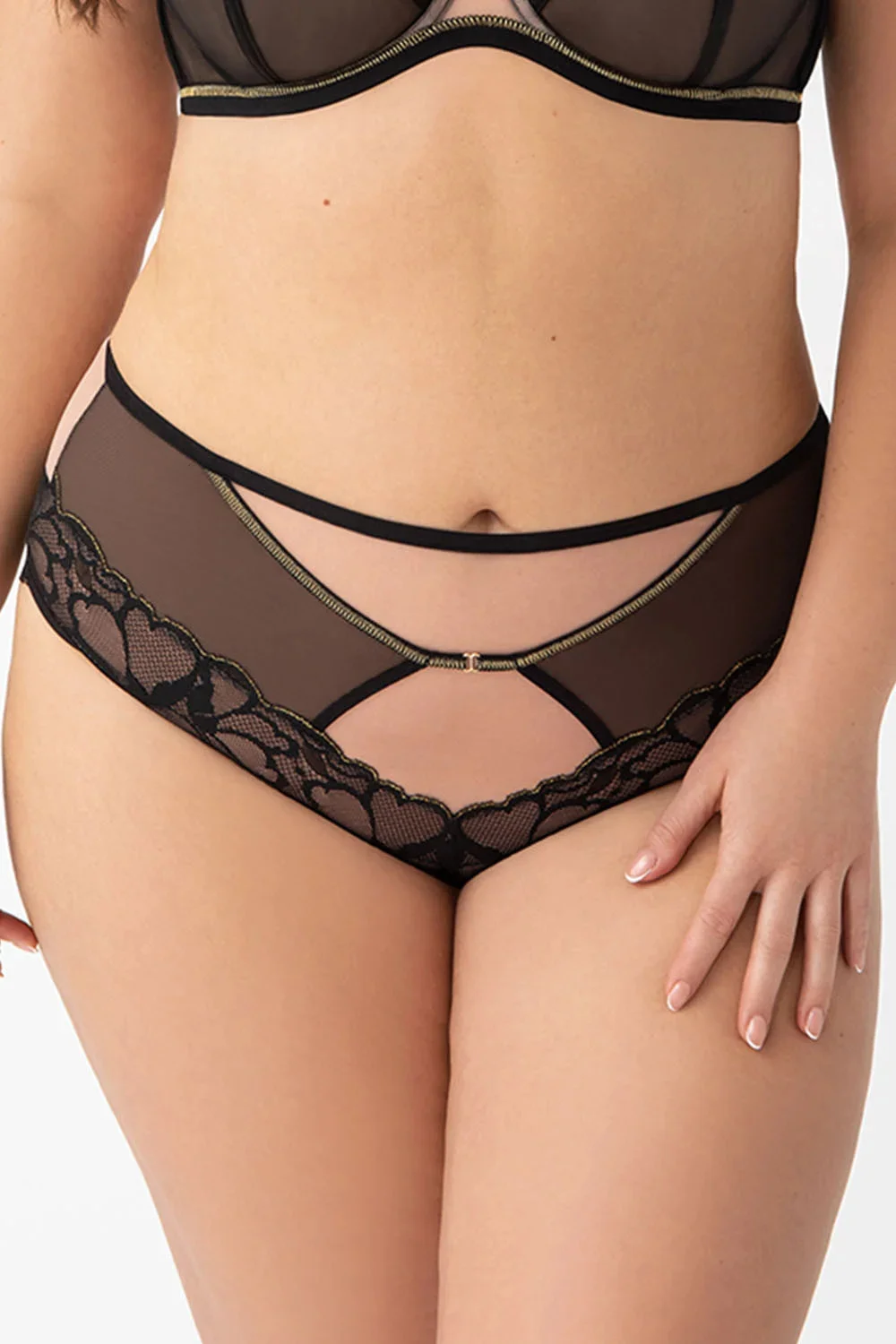 Kalhotky Gorsenia. Model K759 Saanvi. Výrobek je vyroben z 90 % z polyamidu, 7 % z elastanu a 3 % z polyesteru. Výrobek pro ženy. Kalhotky vysoko.