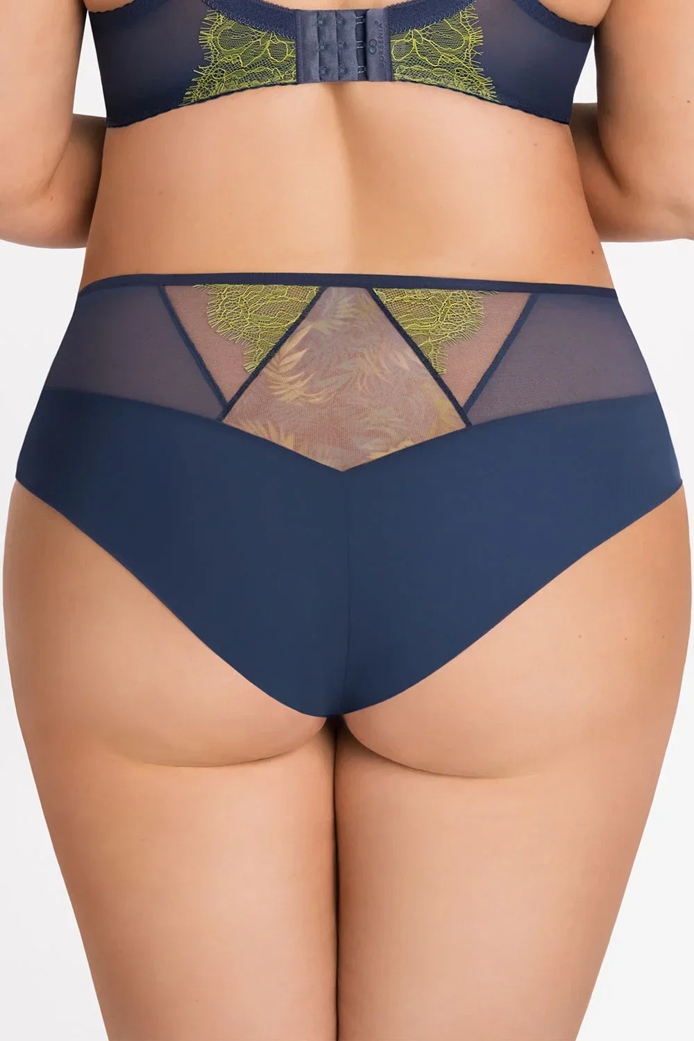 Kalhotky značky Gorsenia. model K799 Arianna. výrobek je vyroben z 90% polyamidu, 7% elastanu, 3% polyesteru. dámské kalhotky s vysokým pasem.