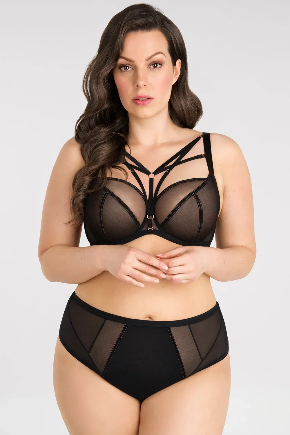 Podprsenka od Gorsenia. Model K824 Just Black. Má dráty, které prsa vhodně tvarují. Svislé velrybí kosti zasazené po stranách. Výrobek má nastavitelné popruhy bez možnosti odepnutí. Kovové háčky na popruh. Podprsenka se zapínáním na háčky a oči. Upevňovací bod: vzadu. Výrobek je vyroben z 90 % z polyamidu, 7 % z elastanu a 3 % z polyesteru. Výrobek pro ženy.Parametry