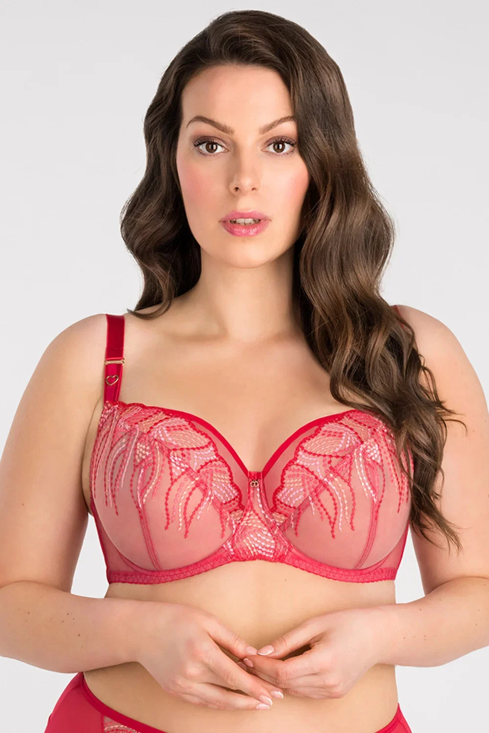 Podprsenka od Gorsenia. Model K828 Crazy Heart. Má dráty, které prsa vhodně tvarují. Svislé velrybí kosti zasazené po stranách. Výrobek má nastavitelné popruhy bez možnosti odepnutí. Kovové háčky na popruh. Podprsenka se zapínáním na háčky a oči. Upevňovací bod: vzadu. Výrobek je vyroben z 90 % z polyamidu, 7 % z elastanu a 3 % z polyesteru. Výrobek pro ženy.