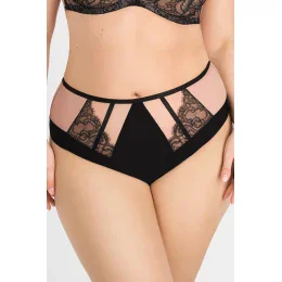 Kalhotky značky Gorsenia. model K835 Black to Black. výrobek je vyroben z 90% polyamidu, 7% elastanu, 3% polyesteru. dámský výrobek. kalhotky s vysokým sedem.
