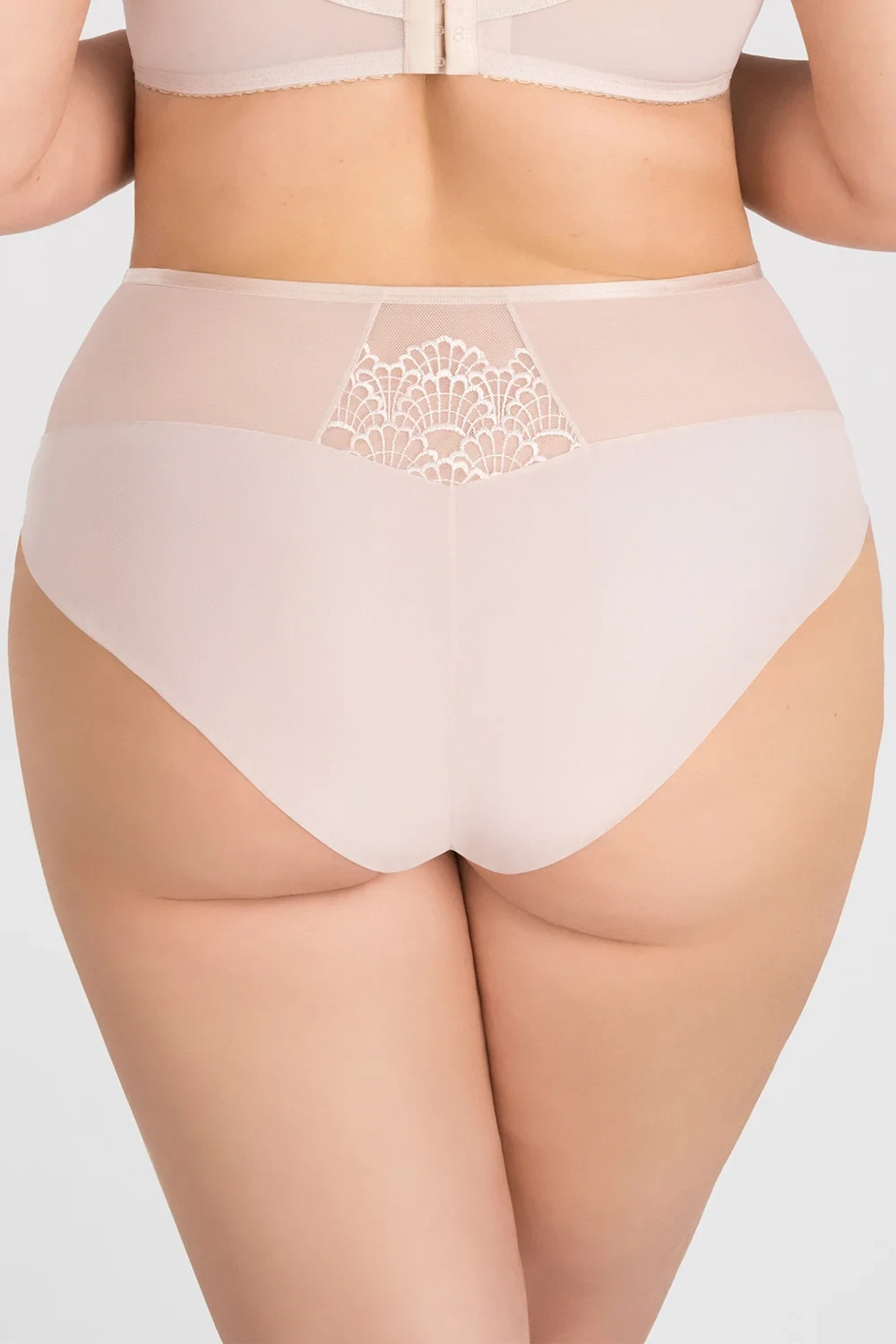 Kalhotky značky Gorsenia. model K856 Just Beige. výrobek je vyroben z 90% polyamidu, 7% elastanu, 3% polyesteru. vysoké kalhotky. dámský výrobek.