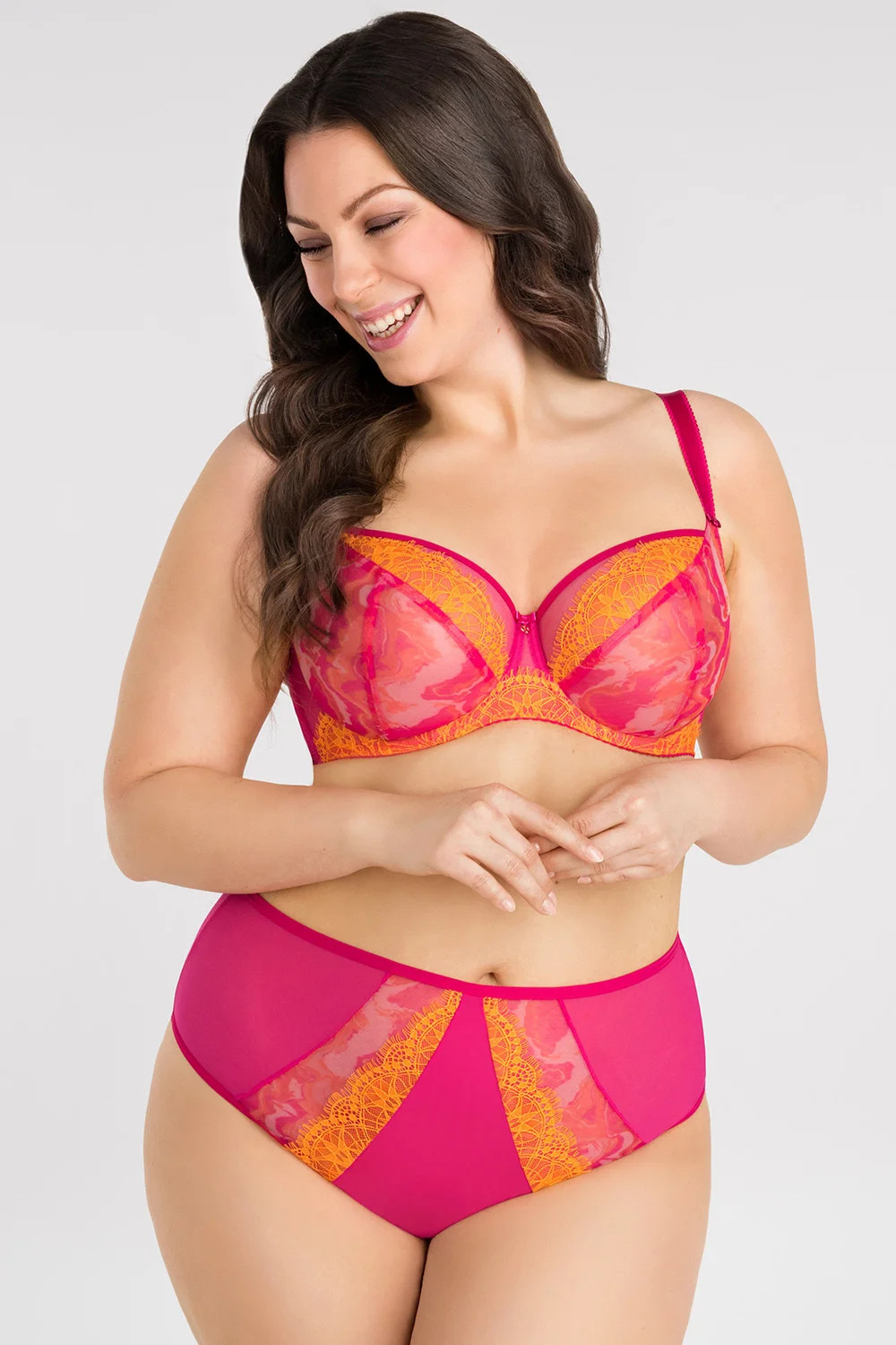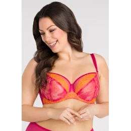 Podprsenka značky Gorsenia, model K858 Show Time, má drátky, které podpírají a tvarují prsa, svislé velrybí kostice na bocích, nastavitelná ramínka bez možnosti odepnutí, kovové háčky na ramínkách, zapínání na háčky a očka, zadní díl, vyrobeno z 90% polyamidu, 7% elastanu, 3% polyesteru, ženská barva.