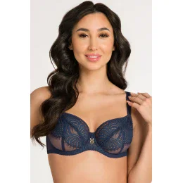 Podprsenka značky Gorsenia, model K876 Aria, má drátky, které podporují a tvarují prsa, svislé velrybí kostice na bocích, nastavitelná ramínka, kovové háčky na ramínkách, zapínání na háčky a očka, zadní díl, vyrobeno z 90 % polyamidu, 7 % elastanu, 3 % polyesteru, ženská barva.