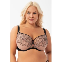 Podprsenka značky Gorsenia, model K924 Palmira, má drátky, které podpírají a tvarují prsa, svislé velrybí kostice na bocích, nastavitelná ramínka bez možnosti odepnutí, kovové háčky na ramínkách, zapínání na háčky a očka, zadní díl, vyrobeno z 90% polyamidu, 7% elastanu, 3% polyesteru, ženské provedení.