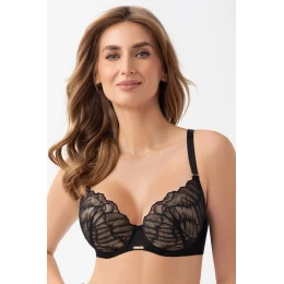 Podprsenka značky Gorsenia, model K953 Celia, má drátky, které podpírají a tvarují prsa, svislé velrybí kostice na bocích, nastavitelná a odnímatelná ramínka, kovové háčky na ramínkách, zapínání na háčky a očka, zadní díl, vyrobeno z 90 % polyamidu, 7 % elastanu, 3 % polyesteru, ženská barva.