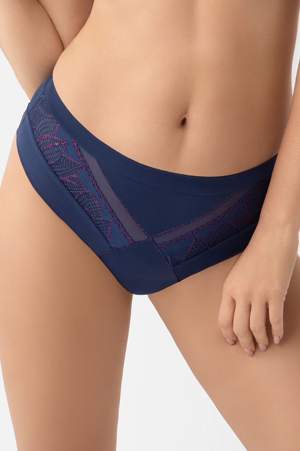 Dámské kalhotky značky Gorsenia, model K972 Astrid. Výrobek je vyroben z 90% polyamidu, 7% elastanu, 3% polyesteru. Dámské kalhotky s vysokým pasem.