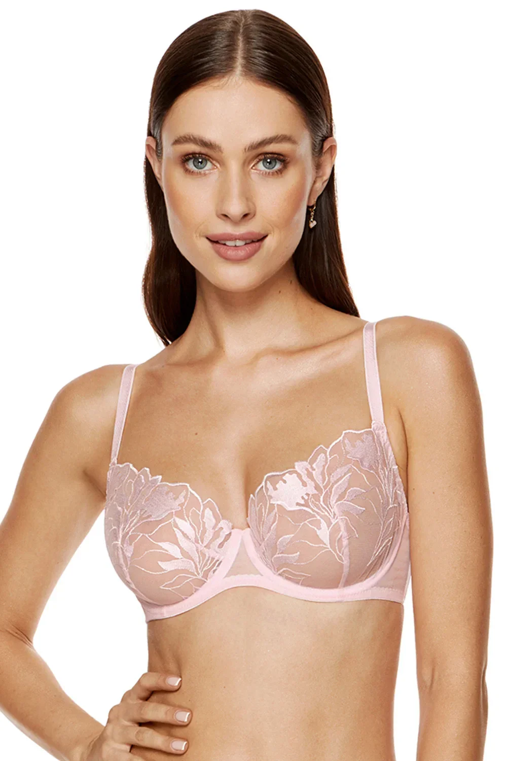 Podprsenka značky Gorteks, model Coco/B2, má drátky, které podporují a tvarují prsa, svislé velrybí kostice na bocích, nastavitelná ramínka bez možnosti odepnutí, kovové háčky na ramínkách, zapínání na háčky na zádech, dvě řady svislých háčků, tři řady vodorovných háčků, vyrobená ze 70 % polyamidu, 25 % polyesteru, 5 % elastanu, dámská.