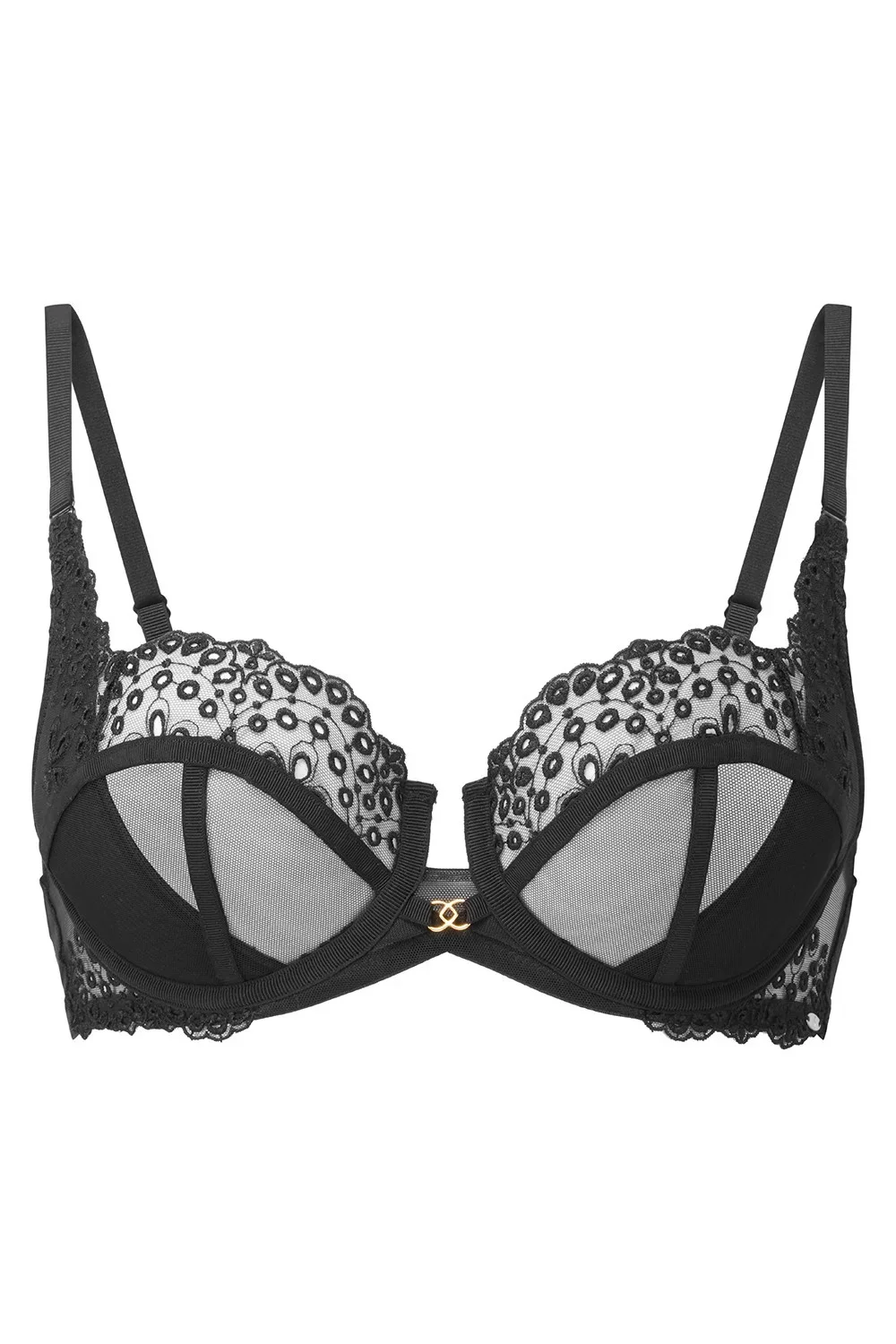 Podprsenka Gossard, model 21205, s drátky pro podporu a tvarování prsou, nastavitelná ramínka, kovové háčky, zapínání na háčky a oka, zadní díl, vyrobeno z 57 % polyamidu, 34 % polyesteru, 9 % elastanu, pro ženy.
