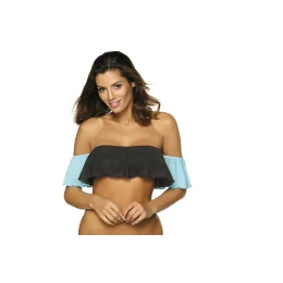 Top smyslně odhaluje ramena a je jedním z nejmódnějších plážových kousků letošní sezóny. Je ušita ze strečové tkaniny, která umožňuje její multifunkčnost - můžete ji nosit i na plavání nebo opalování. Krásně vypadá s šortkami nebo plážovou sukní. Vyniká zcela přirozeným vzhledem - nemá žádné tvarované košíčky ani vyztužující vložky. Výstřih a spodní část topu jsou na gumičku, která skvěle padne. Na zadní straně - vazba. Objednejte si ho a vypadejte prostě skvěle!