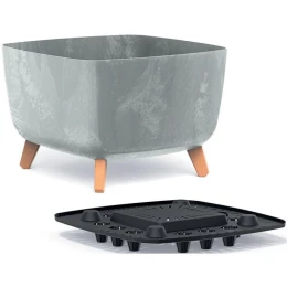 Květináč Gracia Square Concrete Effect má tvar zaobleného čtverce s moderní povrchovou úpravou s efektem betonu a texturou, má lehký tvar vyvýšený na nožkách se strukturou inspirovanou dřevem.