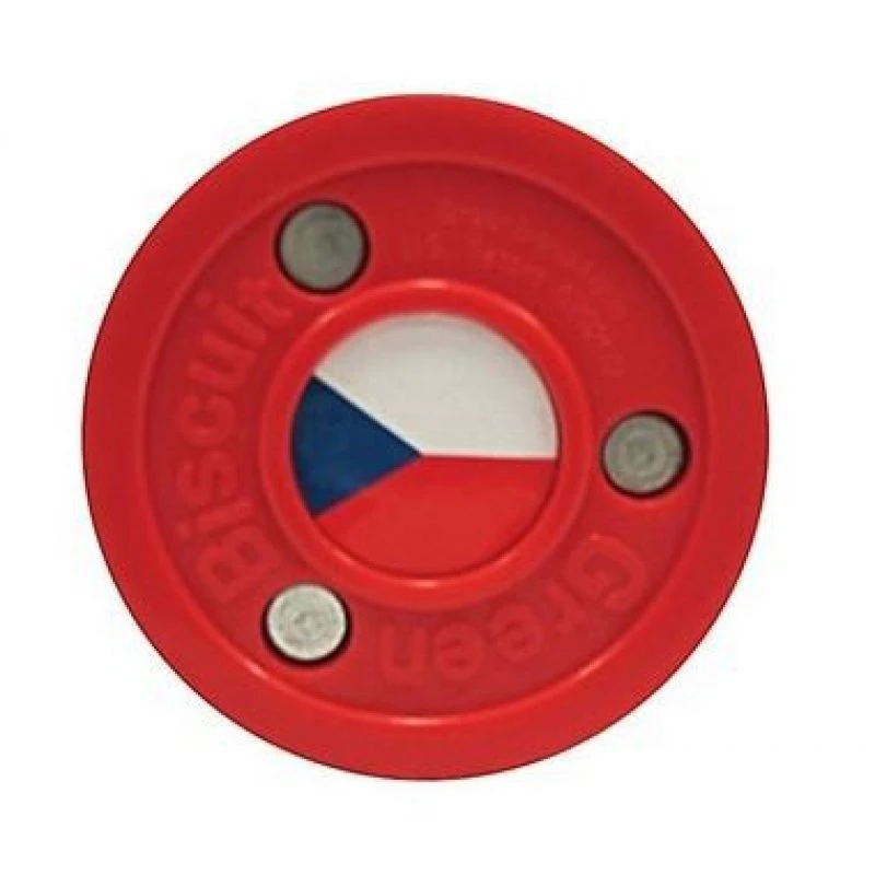 BlueSports Zelená sušenka v barvách národního týmu České republiky. zelená sušenka tréninkový puk s vlajkou České republiky uprostřed.