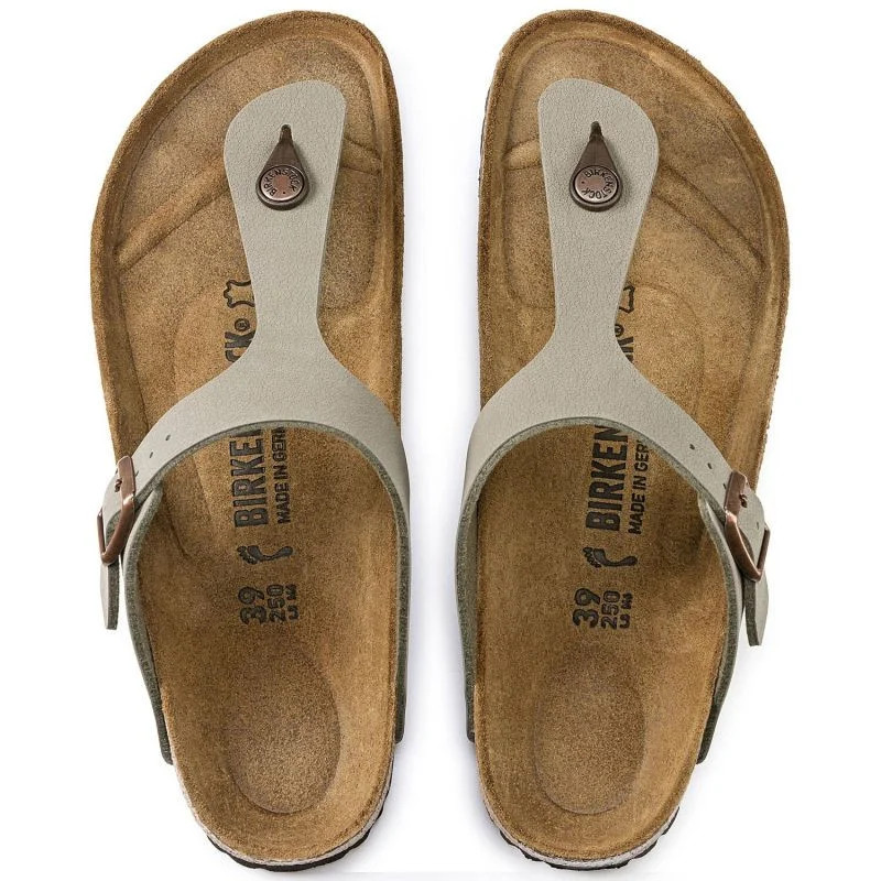 Grey-beige dámské žabky Birkenstock Gizeh Birko-Flor Nubuck Stone regular width (43391) dámské