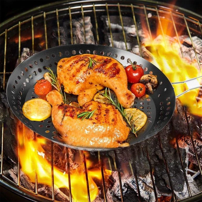 Pánev bude ideální pro grilování choulostivých pokrmů, jako jsou ryby, zelenina nebo krevety, a pomůže zabránit přilepení pokrmů ke grilu, což usnadní jejich otáčení a servírování.
