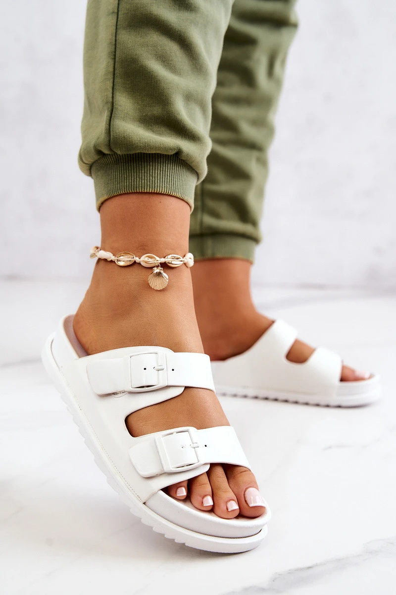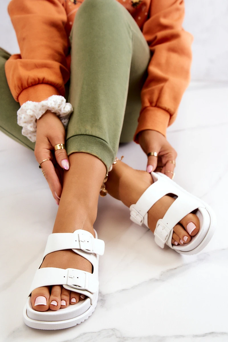 Nazouvací pantofle vyrobené z pryžového materiálu. Jsou nasazeny na ploché, silnější podrážce. Vpředu mají dva nastavitelné popruhy s přezkou. Vybaveno profilovanou vložkou s logem. Vytvoříte s nimi mnoho úžasných letních stylů! Ideální také na doma místo pantoflí. Rozhodně byste je měli mít! Při výběru velikosti použijte tabulku velikostí.