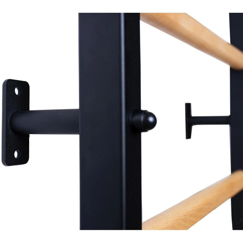 Drabinka gimnastyczna z regulowanym drążkiem to model, który idealnie pasuje do skandynawskiego stylu wnętrz. Pionowe profile (40mm x 50 mm) wykonane są z wysokiej jakości metalu pomalowanego proszkowo. Szczebelki są wykonane z buku o owalnym kształcie, powierzchnia szczebelków jestb olejowana ręcznie, to wszystko wpływa na to, że użytkowanie drabinki jest komfortowe. W górnej części drabinki znajduje się zdejmowany metalowy drążek do podciągania, który wyposażony jest w 6 różnych rączek pozwalających pracować nad siłą mięśni ramion i pleców za pomocą różnych chwytów, np. chwytem szerokim. Drabinka stworzona została z myślą o osobach, które chcą pracować nad swoją sylwetką w zaciszu swojego domu. Drabinka pozwala wykonywać wiele różnorodnych ćwiczeń, nie zajmując przy tym dużo miejsca. Design przemyślano tak, aby pasował do aktualnych trendów w aranżacji wnętrz, nie zaburzając ogólnego wystroju mieszkania. Jedna osoba dorosła może zmienićregulacj