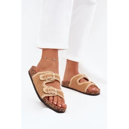 Háčkované dámské pantofle se zlatými sponami Camel Fenira