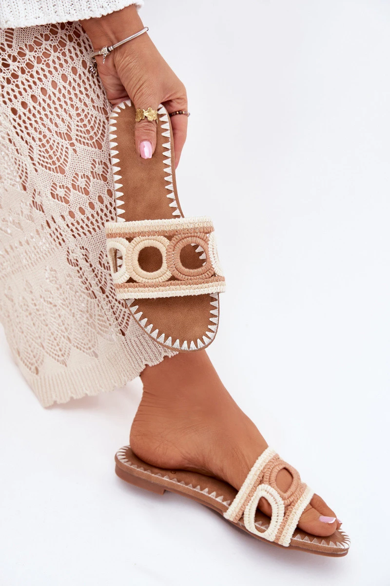 Háčkované dámské sandály na plochém podpatku béžové Nirina