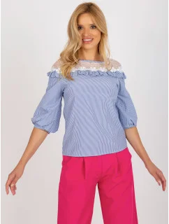 RUE PARIS Modrá proužkovaná halenka.