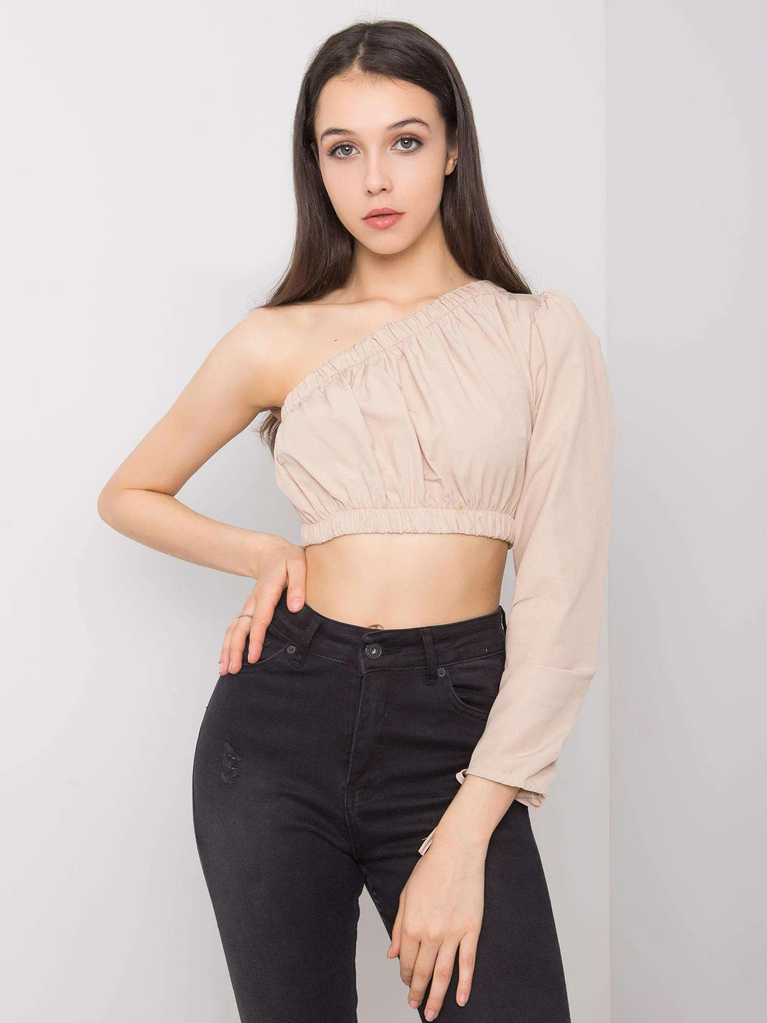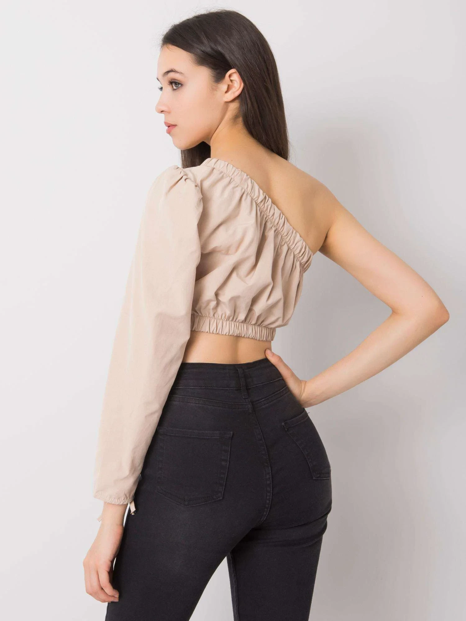 RUE PARIS Béžový top s asymetrickým výstřihem.