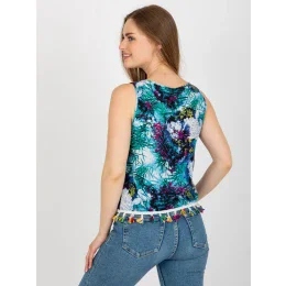 Modrá halenka bez rukávů s potiskem .