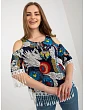 Námořnicky modrá letní halenka s potiskem a třásněmi .