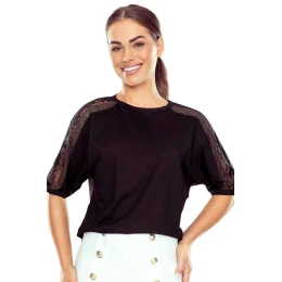 Bluzka damska Atila z rękawem 3/4 to elegancka i uniwersalna propozycja dla kobiet, które cenią połączenie klasyki z subtelnymi, kobiecymi detalami. Model został wykonany z wysokiej jakości miękkiej i elastycznej wiskozy, która doskonale dopasowuje się do sylwetki, zapewniając komfort noszenia przez cały dzień. Klasyczny okrągły dekolt nadaje bluzce ponadczasowy charakter, natomiast efektowne koronkowe wstawki na ramionach i rękawach przyciągają wzrok i dodają całości elegancji. Rękawy o długości do łokcia sprawiają, że bluzka Atila idealnie sprawdziEAN čárové kódy zboží jsou: