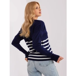 Dámský oversize svetr v námořnické modři s výstřihem do V .